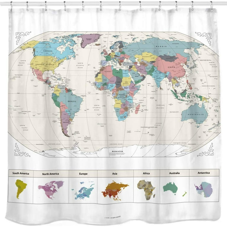 Amazon.com: Riyidecor World Map Shower Curtain Travel Educational