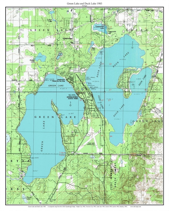 Green Lake & Duck Lake 1983 Map Grand Traverse County Etsy Singapore
