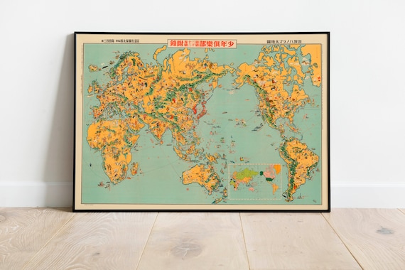 World Map Wall Print 1933 Japanese World Map Poster Print Canvas