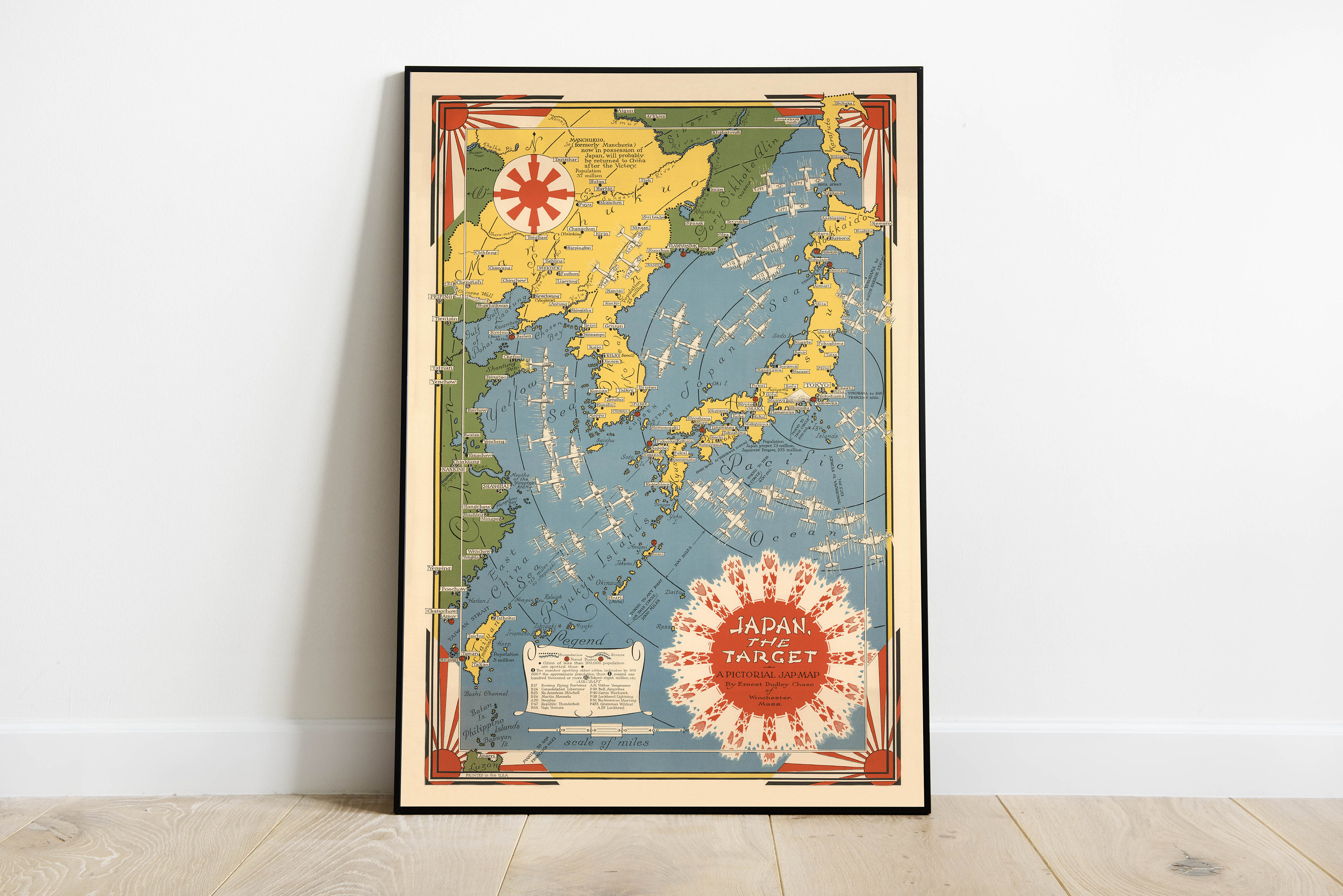 World War 2 Japan Map Poster WW2 Wall Prints Japan Old Map Wall
